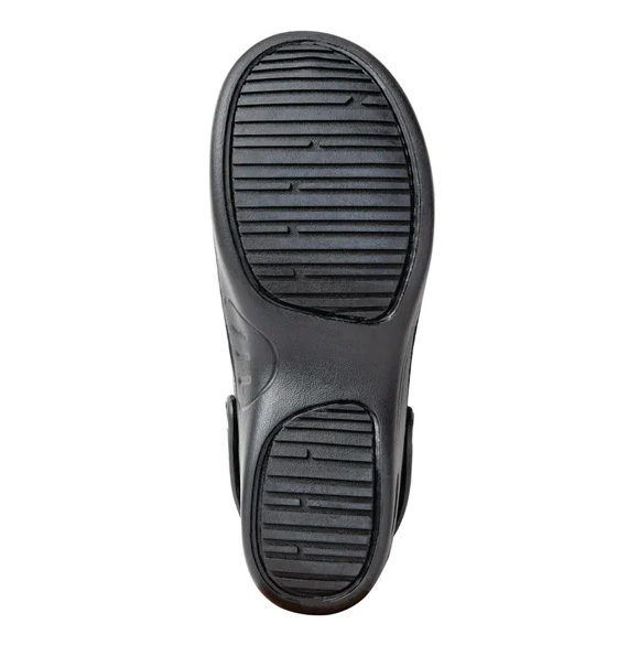 Capital Black Chefs Clogs (dual-sized UK 3–4) are designed for comfort and safety during long kitchen shifts. The slip-resistant sole helps reduce the risk of falls on wet or greasy floors, while the lightweight EVA construction moulds to your footbed for lasting comfort. A rear strap keeps feet secure and stable.