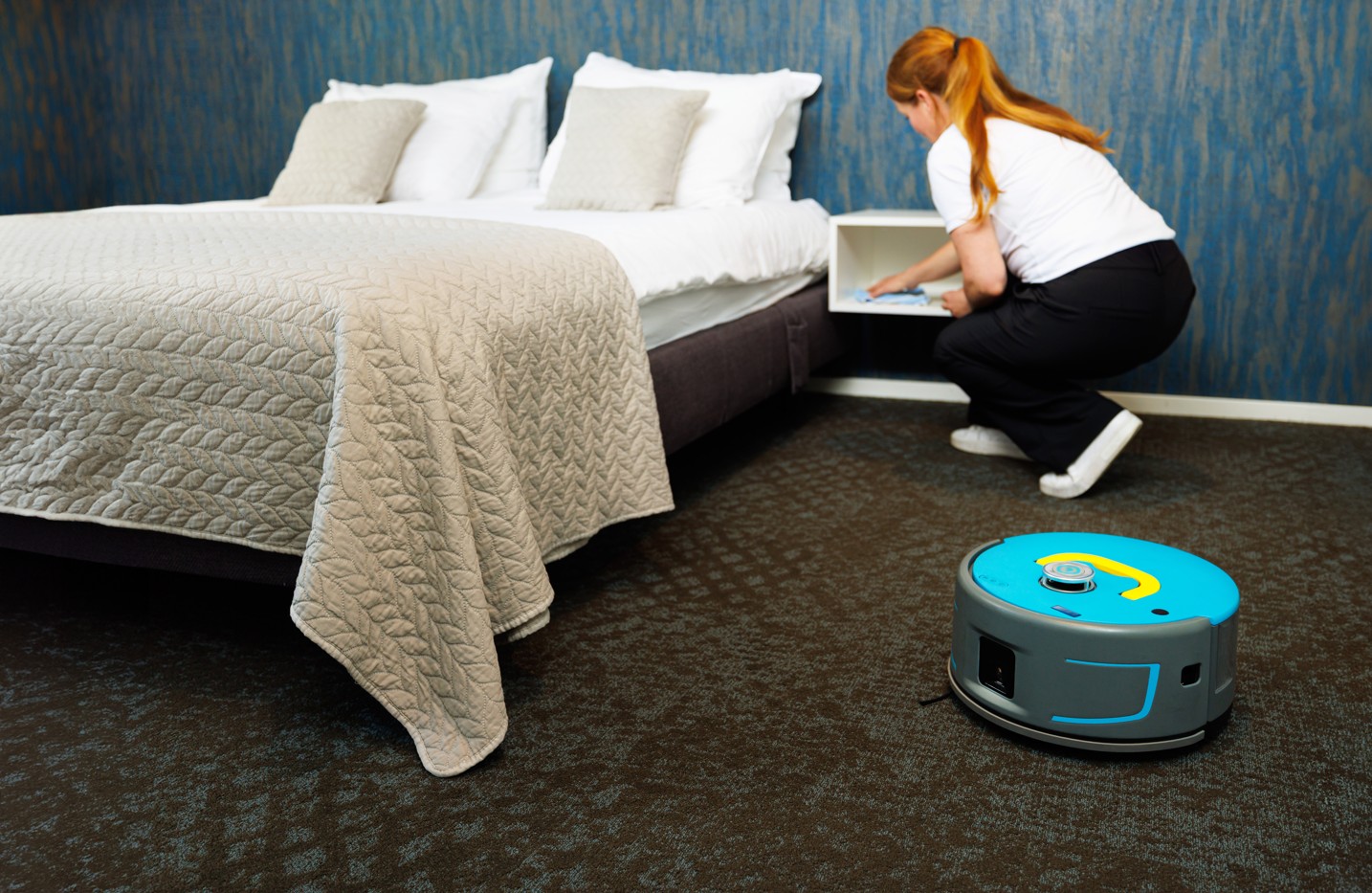 The i-Team Co-botic 1900 Drop & Go is a next-generation robotic vacuum cleaner designed in collaboration with professional cleaners to deliver efficient, safe, and consistent cleaning in hotels, offices, and other high-demand environments. This compact, autonomous machine allows staff to focus on more complex tasks while the co-botic handles repetitive floor cleaning with precision.