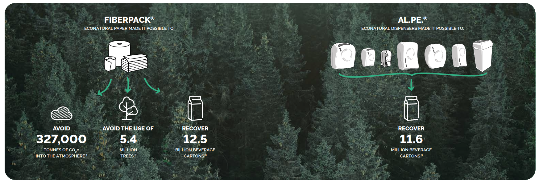 Constructed from 108 recycled beverage cartons, the Econatural Flow dispenser transforms cellulose fibres, polyethylene, and aluminum into a durable, high-quality hygiene product. Its elegant finish is complemented by the embossed circular economy symbol and Econatural engraving, showcasing the 100% recycled nature of the dispenser. A transparent product window allows staff to quickly monitor towel levels, simplifying maintenance and reducing downtime.