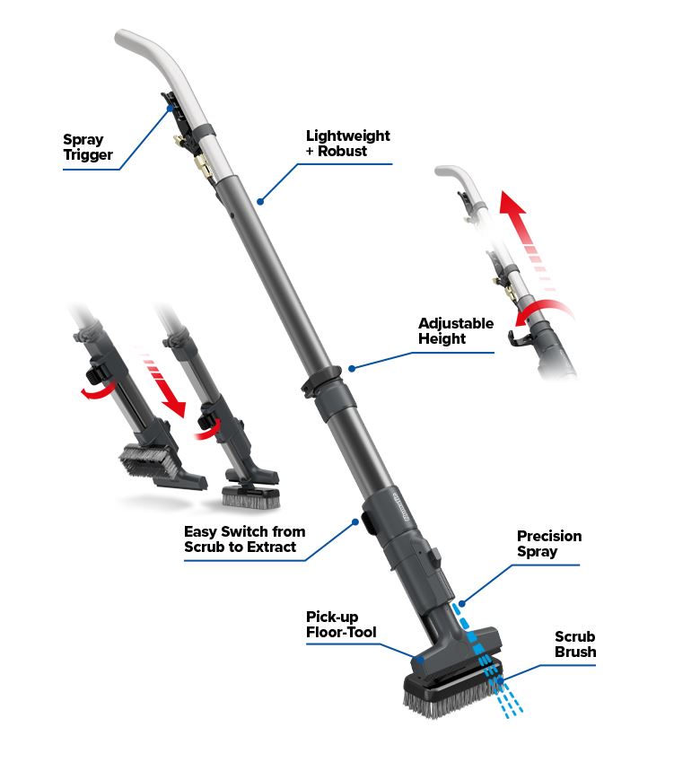 From emergency spills to deep cleaning, the X-tract wand enables precise cleaning around fixtures, edges, and obstacles. With the optional Carpet Kit, you can quickly treat spills before they stain, ensuring fast, professional results in every area.